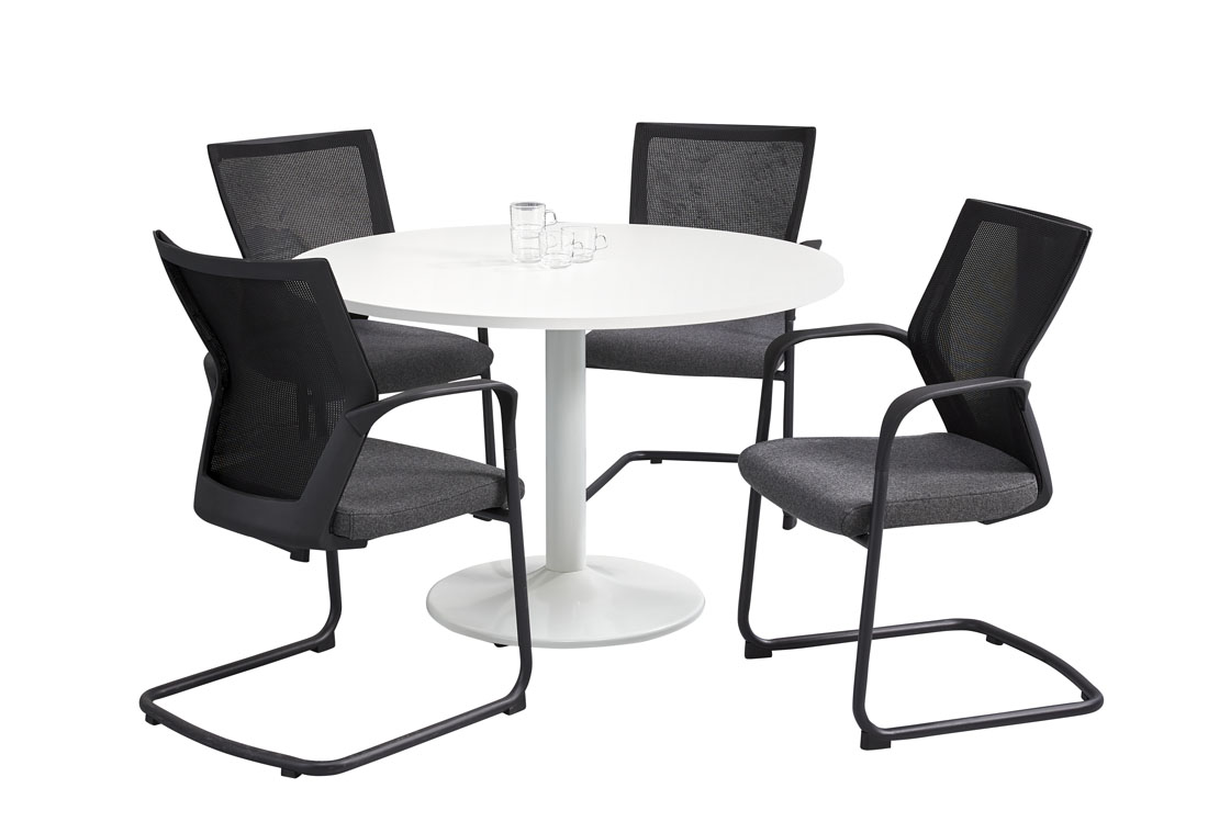 Runde Besprechungstische fördern offene und gleichberechtigte Gespräche – und genau das macht sie in vielen Unternehmen so beliebt. Runde Tische werden meist in den Maßen 80cm, 100 cm oder 120cm angeboten, die perfekt für kleinere Besprechungsräume oder Teamsitzungen geeignet sind.